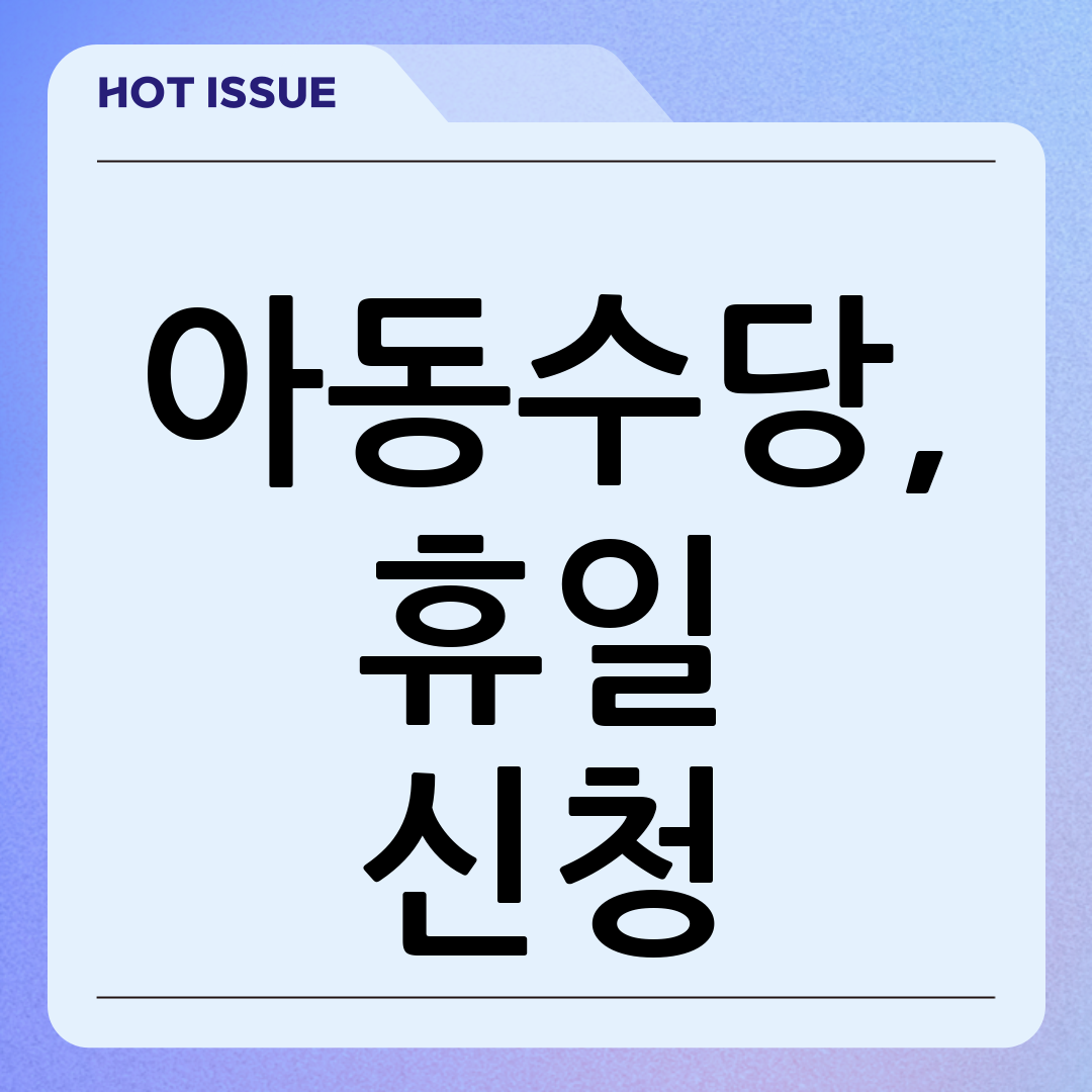 A1: 네, 온라인으로는 휴일에도 신청 가능합니다. 복지로(www.bokjiro.go.kr) 또는 정부24(www.gov.kr)를 통해 24시간 언제든지 아동수당을 신청할 수 있습니다. 하지만 주민센터 방문 신청은 평일에만 가능합니다.