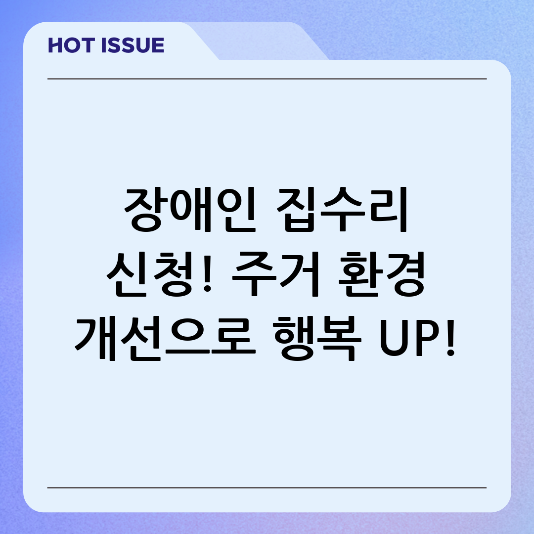 복지로 장애인 주거편의(집수리) 사업 신청: 주거 환경 개선으로 삶의 질 향상!
