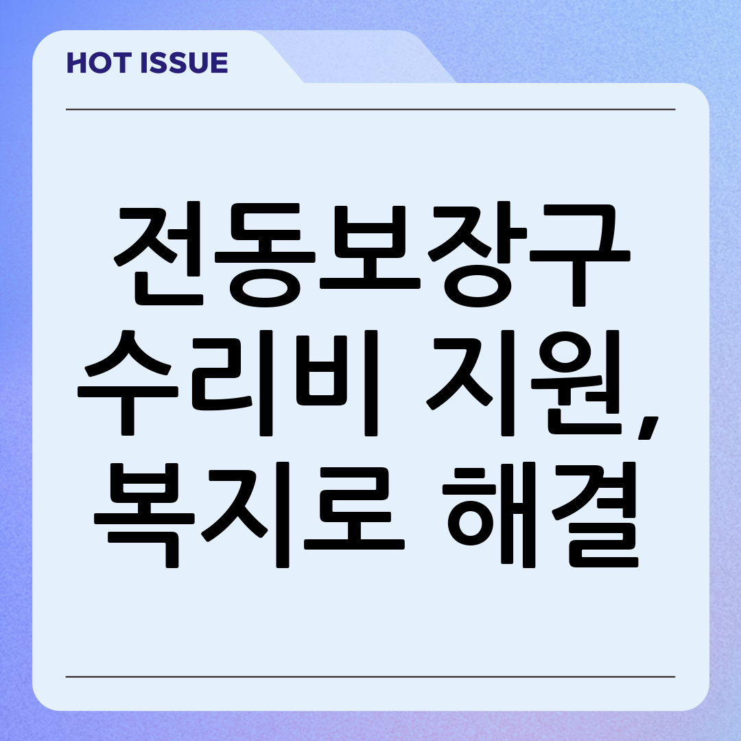 장애인 전동보장구 수리비 지원은 전동휠체어 및 전동스쿠터의 기능 유지에 필요한 필수적인 수리 항목에 대해 지원됩니다.