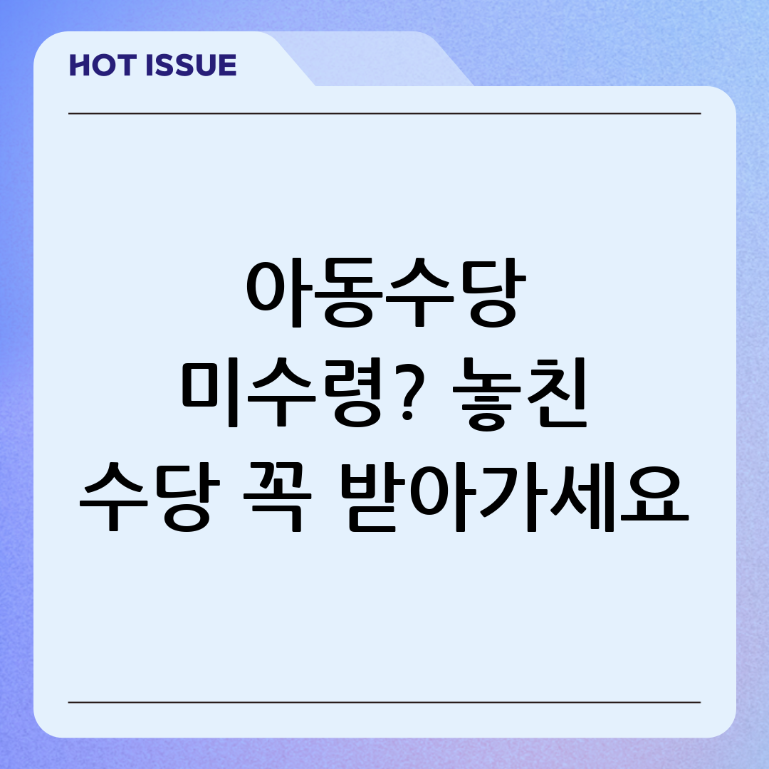 - 신청 누락 또는 반려: 아동수당 신청 자체를 하지 않았거나, 신청 서류 미비 등으로 신청이 반려된 경우. (이 경우 미수령이 아닌 '미지급'에 해당할 수 있습니다.)